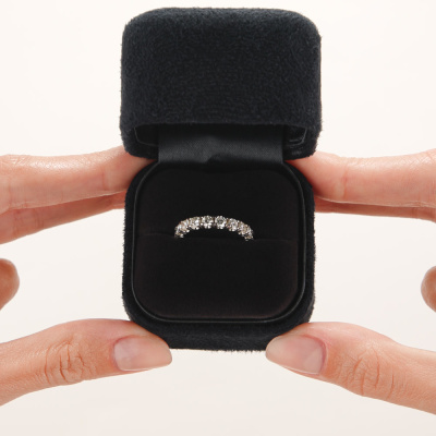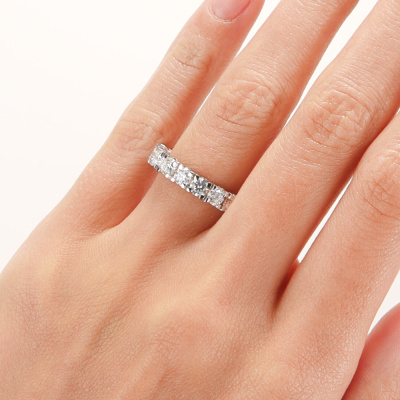 Кольцо с 17 бриллиантами природными, 1.79 карат, огранка круг 57 граней, цвет 4, чистота 6, тип огранки А; Белое золото 585 пробы.