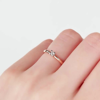 Кольцо с 1 бриллиантом природным, 0.04 карат, огранка круг 57 граней, цвет 4, чистота 6, тип огранки А; Розовое золото 585 пробы.