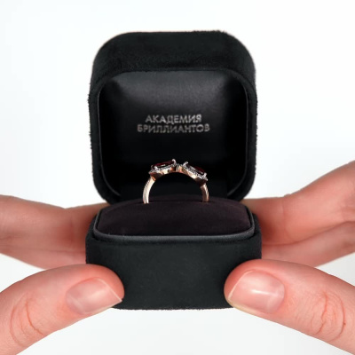 Золотое кольцо с бриллиантами природными и гранатами природными