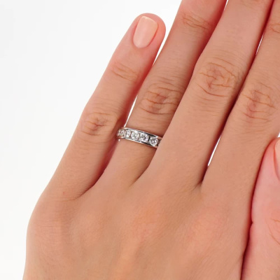 Кольцо с 10 бриллиантами природными, 0.86 карат, огранка круг 57 граней, цвет 3, чистота 6, тип огранки А; Белое золото 585 пробы.