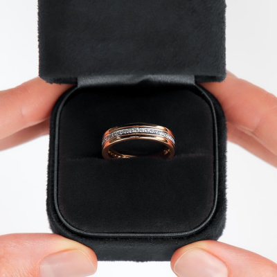 Кольцо с 37 бриллиантами природными, 0.28 карат, огранка круг 57 граней, цвет 3, чистота 6, тип огранки А; Розовое золото 585 пробы.