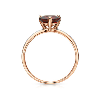 Кольцо с 14 бриллиантами природными, 0.05 карат, огранка круг 17 граней, цвет 2, чистота 2, тип огранки А; 1 гранатом природным, 1.33 карат; Розовое золото 585 пробы.