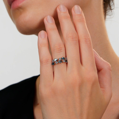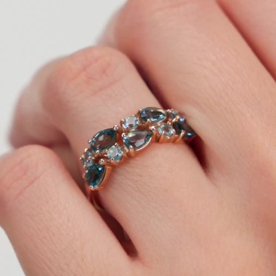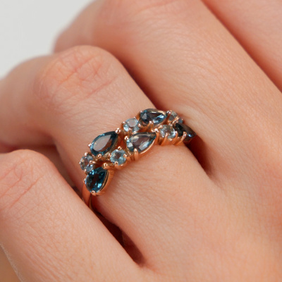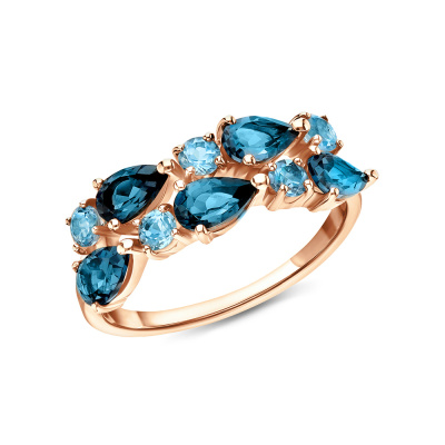 Кольцо с 5 топазами лондон природными, тип огранки Б; 5 топазами свисс природными, тип огранки В; Розовое золото 585 пробы.