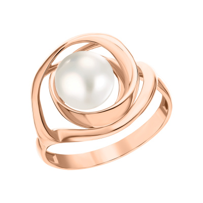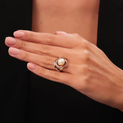 Кольцо с 1 жемчугом пресноводным культивированным белым, 3.99 карат; Розовое золото 585 пробы.