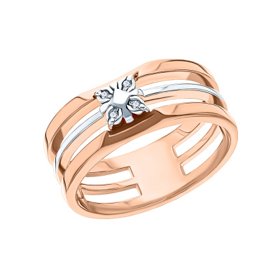 Кольцо с 4 бриллиантами природными, 0.01 карат, огранка круг 17 граней, цвет 2, чистота 3, тип огранки Б; Серебро 925 пробы.