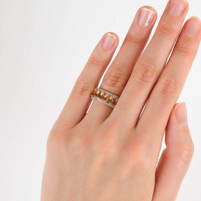 Золотое кольцо с бриллиантами природными и цитринами природными