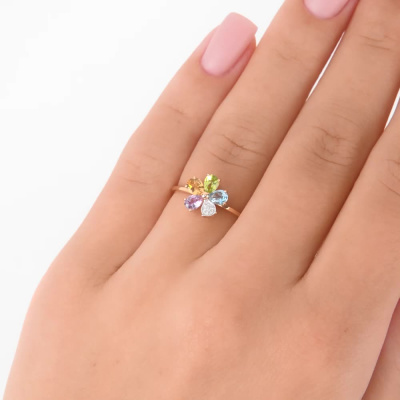 Золотое кольцо с природными цитринами, топазами, аметистами, хризолитами и бриллиантами