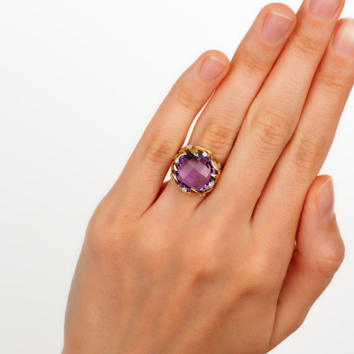Золотое кольцо с бриллиантами природными и аметистами природными