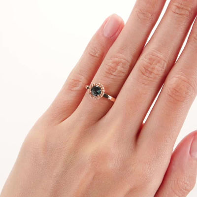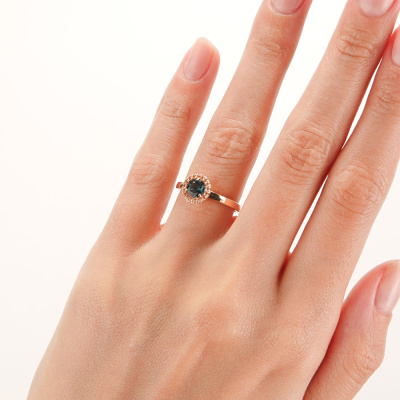 Кольцо с 1 топазом лондон природным, 0.591 карат, тип огранки В; 17 цитринами природными, 0.075 карат, тип огранки В; Розовое золото 585 пробы.