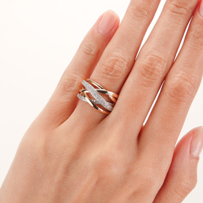 Кольцо с 98 бриллиантами природными, 0.2 карат, огранка круг 17 граней, цвет 2, чистота 2, тип огранки А; Розовое золото 585 пробы.