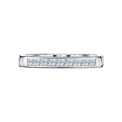 Кольцо с 9 бриллиантами природными, 0.57 карат, огранка принцесса 65 граней, цвет 3, чистота 6, тип огранки А; Белое золото 585 пробы.