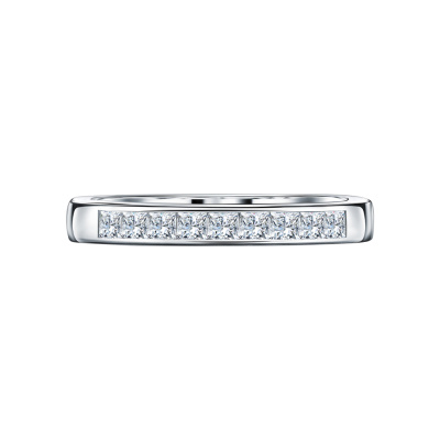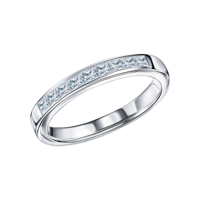 Кольцо с 9 бриллиантами природными, 0.381 карат, огранка принцесса 65 граней, цвет 3, чистота 6, тип огранки А; Белое золото 585 пробы.
