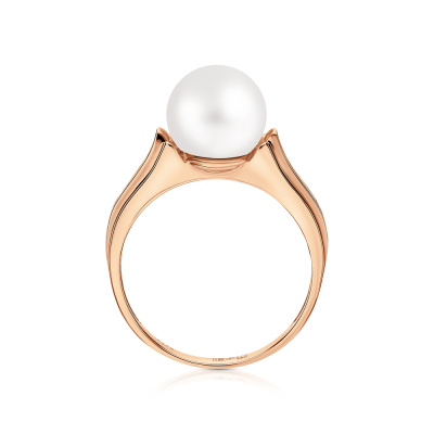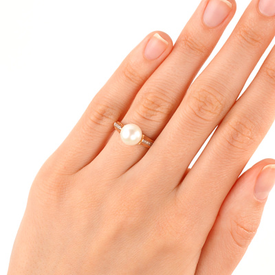 Кольцо с 14 бриллиантами природными, 0.04 карат, огранка круг 17 граней, цвет 2, чистота 2, тип огранки А; 1 жемчугом пресноводным культивированным белым; Розовое золото 585 пробы.