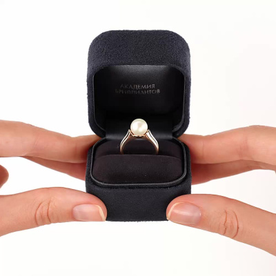 Золотое кольцо с бриллиантами природными и жемчугом природным культивированным