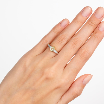 Кольцо из желтого золота 585 пробы, которое восхитит вас своей элегантностью и блеском. Оно украшено 14 бриллиантами общим весом 0.033 карата, с круглой огранкой и 17 гранями. Цвет и чистота бриллиантов составляют 2, а тип огранки — Б. Кроме того, в центре кольца находится кварц лимонного цвета, весом 0.588 карата и с огранкой типа Б. Это кольцо станет прекрасным дополнением к вашему образу и отличным подарком для особенного человека.