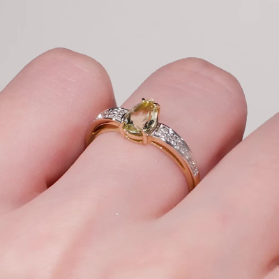 Золотое кольцо с лимонным кварцем и бриллиантами