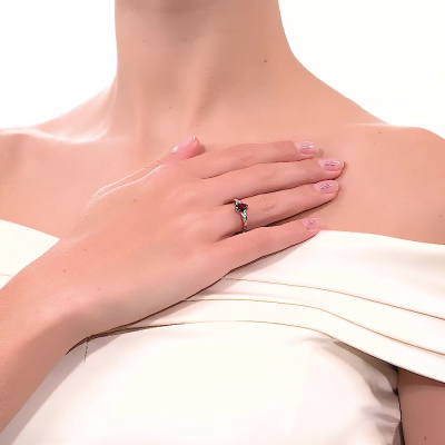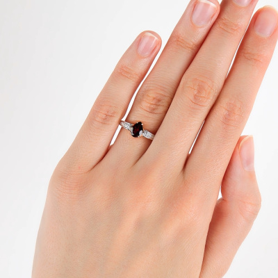 Кольцо с 8 бриллиантами природными, 0.03 карат, огранка круг 17 граней, цвет 2, чистота 2, тип огранки А; 14 бриллиантами природными, 0.03 карат, огранка круг 17 граней, цвет 2, чистота 2, тип огранки А; 1 гранатом природным, 0.85 карат; Розовое золото 585 пробы.