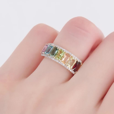 Золотое кольцо с природными бриллиантами, цитринами, гранатами, топазами, кварцами, аметистами и хризолитами