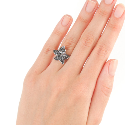 Кольцо с 16 сапфирами природными, 0.157 карат, цвет 2, чистота 2, тип огранки В; 59 сапфирами природными, 0.374 карат, цвет 2, чистота 2, тип огранки В; Белое золото 585 пробы.