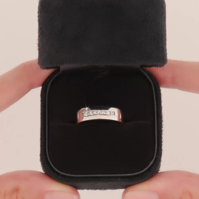 Кольцо с 7 бриллиантами природными, 0.32 карат, огранка принцесса 65 граней, цвет 3, чистота 6, тип огранки А; Платина 950 пробы.
