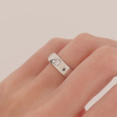 Кольцо с 1 бриллиантом природным, 0.08 карат, огранка круг 57 граней, цвет 3, чистота 6, тип огранки А; Платина 950 пробы.