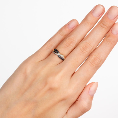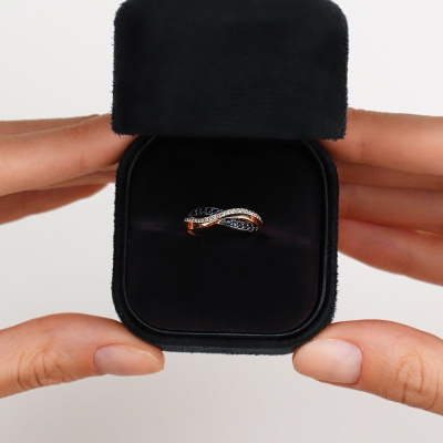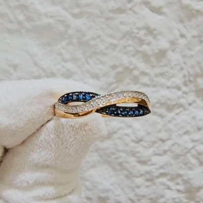 Кольцо с 24 бриллиантами природными, 0.055 карат, огранка круг 17 граней, цвет 2, чистота 2, тип огранки Б; 11 сапфирами природными, 0.111 карат, цвет 2, чистота 2, тип огранки В; Розовое золото 585 пробы.