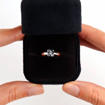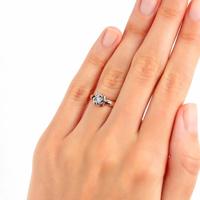 Кольцо с 1 бриллиантом природным, 0.02 карат, огранка круг 57 граней, цвет 3, чистота 6; Розовое и белое золото 375 пробы.