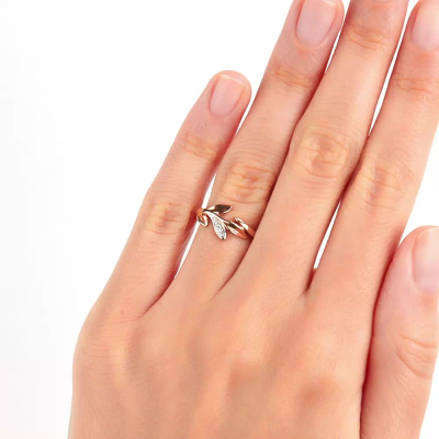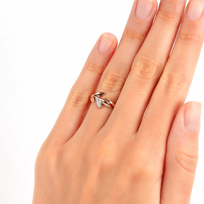 Кольцо с 1 бриллиантом природным, 0.009 карат, огранка круг 57 граней, цвет 3, чистота 6; 2 бриллиантами природными, 0.01 карат, огранка круг 17 граней, цвет 2, чистота 2; Розовое золото 375 пробы.