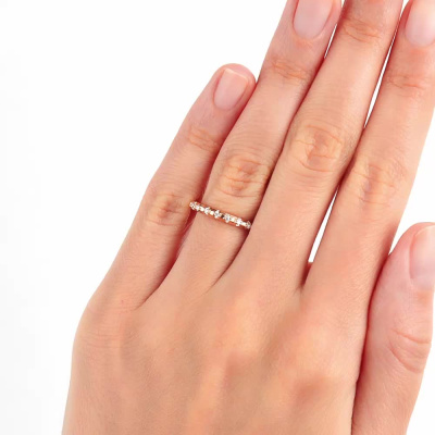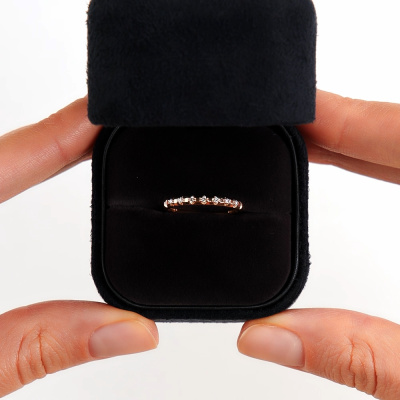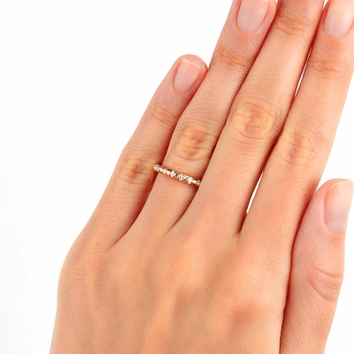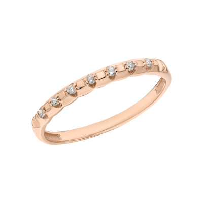 Кольцо с 7 бриллиантами природными, 0.06 карат, огранка круг 57 граней, цвет 3, чистота 6; Розовое золото 375 пробы.