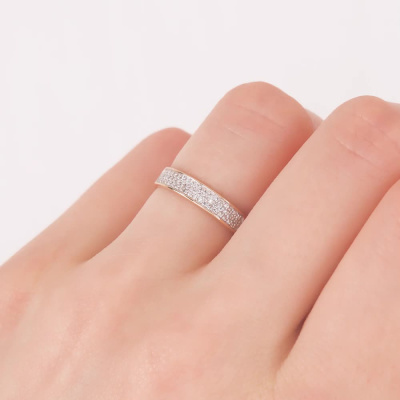 Кольцо с 55 бриллиантами природными, 0.13 карат, огранка круг 17 граней, цвет 2, чистота 2, тип огранки А; Розовое золото 585 пробы.