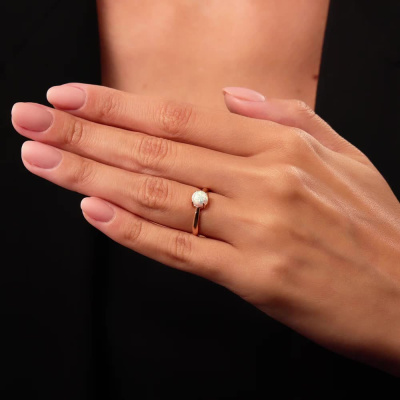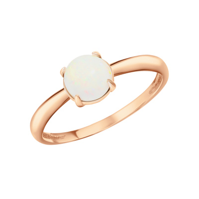 Кольцо с 1 опалом белым синтетическим, 0.613 карат, тип огранки Б; Розовое золото 585 пробы.