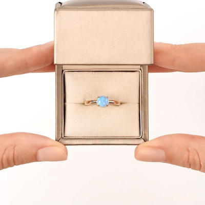 Кольцо с 1 опал синий синтетический, 0.62 карат, тип огранки Б; Желтое золото 585 пробы.
