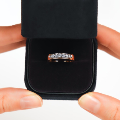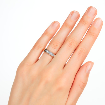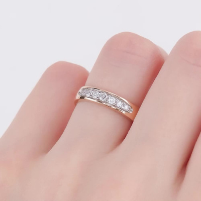 Кольцо с 1 бриллиантом, 0.06 карат, огранка круг 57 граней, цвет 3, чистота 6, тип огранки А; 4 бриллиантами, 0.16 карат, огранка круг 57 граней, цвет 3, чистота 6, тип огранки А; 2 бриллиантами, 0.04 карат, огранка круг 57 граней, цвет 3, чистота 6, тип огранки А; Розовое золото 585 пробы.