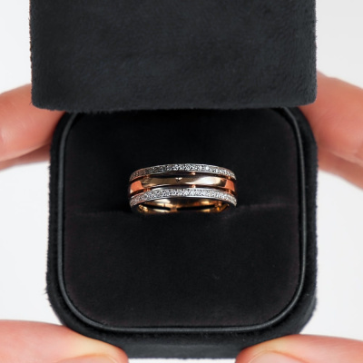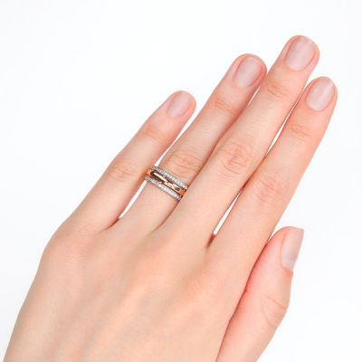 Кольцо с 100 бриллиантами природными, 0.35 карат, огранка круг 57 граней, цвет 3, чистота 6, тип огранки А; Розовое и белое золото 585 пробы.