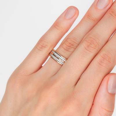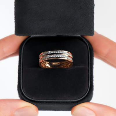 Кольцо с 94 бриллиантами, 0.56 карат, огранка круг 57 граней, цвет 3, чистота 6, тип огранки А; Розовое золото 585 пробы.