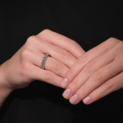 Кольцо с 2 бриллиантами природными, 0.36 карат, огранка круг 57 граней, цвет 3, чистота 6, тип огранки А; 14 бриллиантами природными, 2.19 карат, огранка круг 57 граней, цвет 3, чистота 6, тип огранки А; Белое золото 585 пробы.