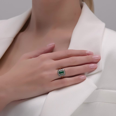 Золотое кольцо с бриллиантами природными и изумрудами природными
