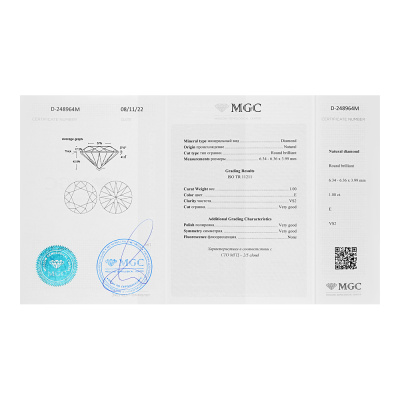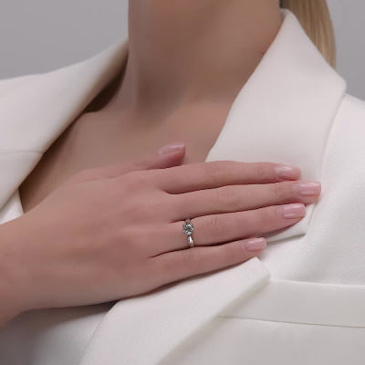Кольцо с 1 бриллиантом, 1 карат, огранка круг 57 граней, цвет 2, чистота 3, тип огранки А; Белое золото 585 пробы.