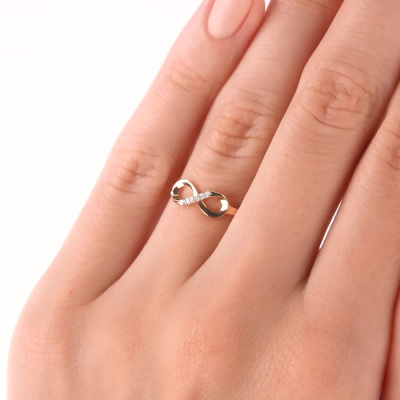 Кольцо с 5 бриллиантами природными, 0.009 карат, огранка круг 17 граней, цвет 2, чистота 2, тип огранки А; Розовое золото 585 пробы.