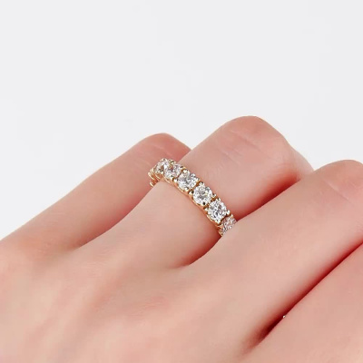 Кольцо с 16 бриллиантами природными, 3.04 карат, огранка круг 57 граней, цвет 4, чистота 6, тип огранки А; Желтое золото 585 пробы.