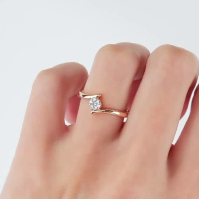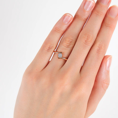 Кольцо с 1 бриллиантом природным, 0.02 карат, огранка круг 57 граней, цвет 3, чистота 6, тип огранки А; 6 бриллиантами природными, 0.06 карат, огранка круг 57 граней, цвет 3, чистота 6, тип огранки А; Розовое золото 585 пробы.