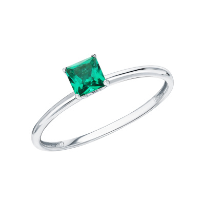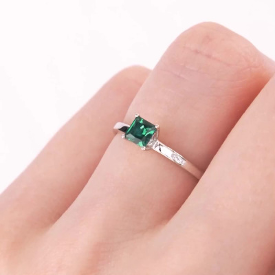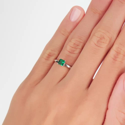 Кольцо с 1 гидротермальным изумрудом, 0.304 карат, тип огранки Б; Белое золото 585 пробы.