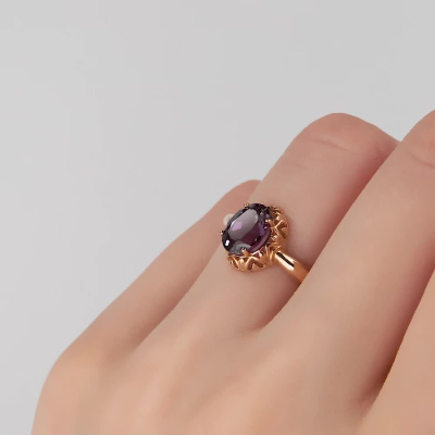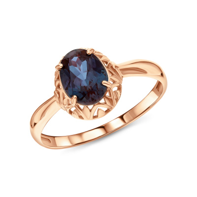 Кольцо с 1 александритом синтетическим, 1.45 карат; Розовое золото 585 пробы.