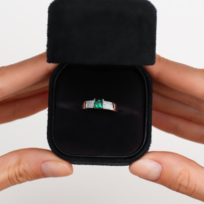 Золотое кольцо с бриллиантами природными и изумрудами выращенными