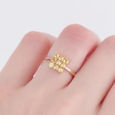 Кольцо с 9 сапфирами желтыми природными, 0.7 карат; Розовое золото 585 пробы.