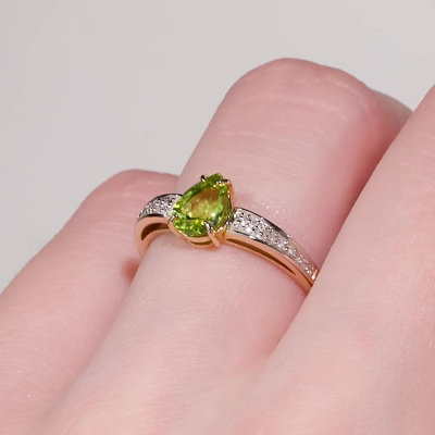 Золотое кольцо с бриллиантами природными и хризолитами природными
