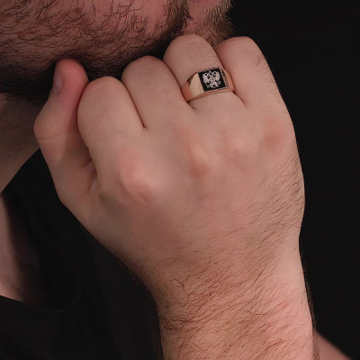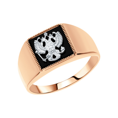 Кольцо с 1 имитацией оникса, 2. карат; Розовое золото 585 пробы.