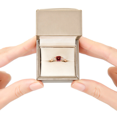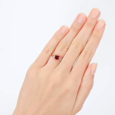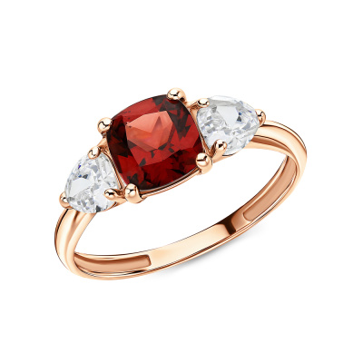 Золотое кольцо с гранатом и горным хрусталем