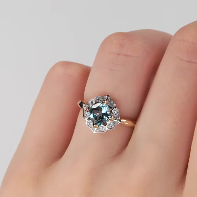 Кольцо с 16 бриллиантами природными, 0.04 карат, огранка круг 17 граней, цвет 2, чистота 2, тип огранки А; 1 топазом свисс природным, 1.17 карат; Розовое золото 585 пробы.