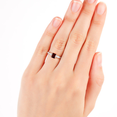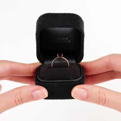Кольцо с 14 бриллиантами природными, 0.03 карат, огранка круг 17 граней, цвет 2, чистота 2, тип огранки А; 1 гранатом природным, 0.8 карат; Розовое золото 585 пробы.